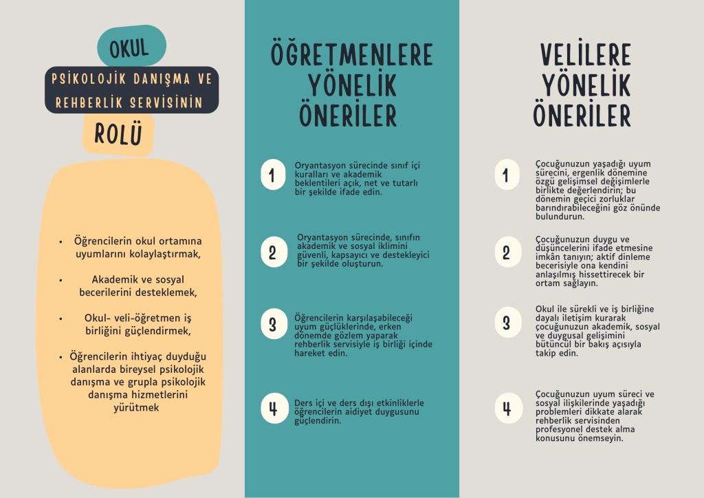 Ortaöğretime geçiş, öğrencilerin akademik, sosyal ve duygusal uyumları açısından kritik bir dönemdir. Okul- öğretmen –veli–rehberlik servisi iş birliği, bu sürecin sağlıklı ilerlemesini ve öğrencilerin eğitim hayatına güçlü bir başlangıç yapmalarını sağlar.